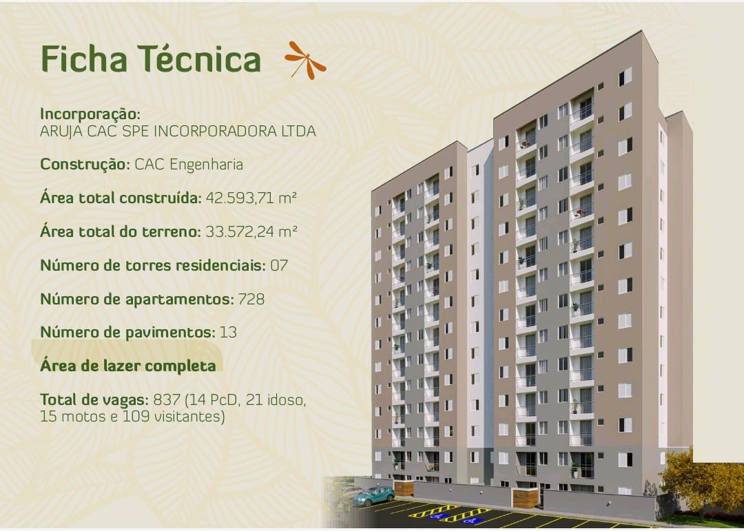 Verdi Residence está localizado na Av. Dr. Armando Colângelo, Center Ville em Arujá com previsão de entrega em 01/2028, por isso seu status atual é “Em construção”. O projeto da CAC Engenharia é um lançamento de 01/2024, composto por 7 torres e 728 residências. As plantas variam entre 47 e 49 m², sendo algumas residências com 1 e 2 quartos, 1 banheiro e 1 vaga. Neste momento, seu o preço está a partir de R$ 345.599,00 para a planta de 47 m²