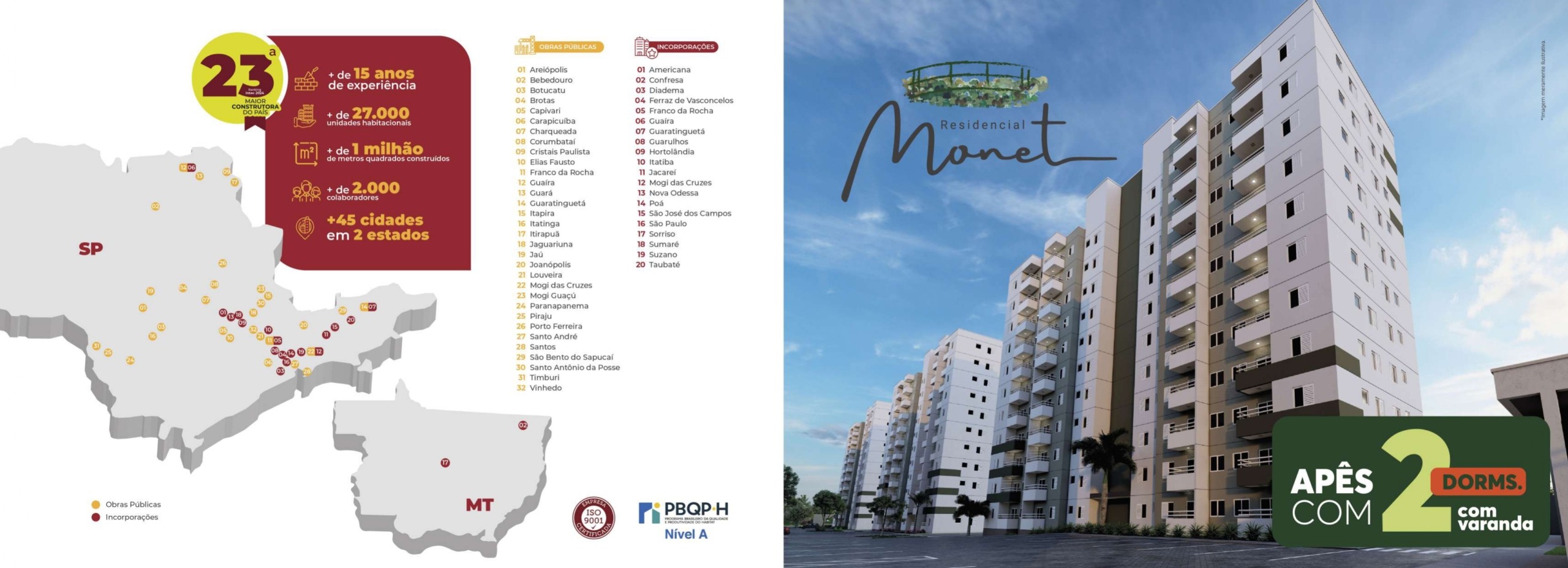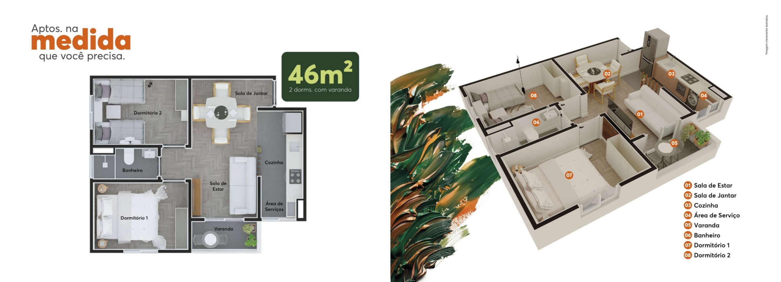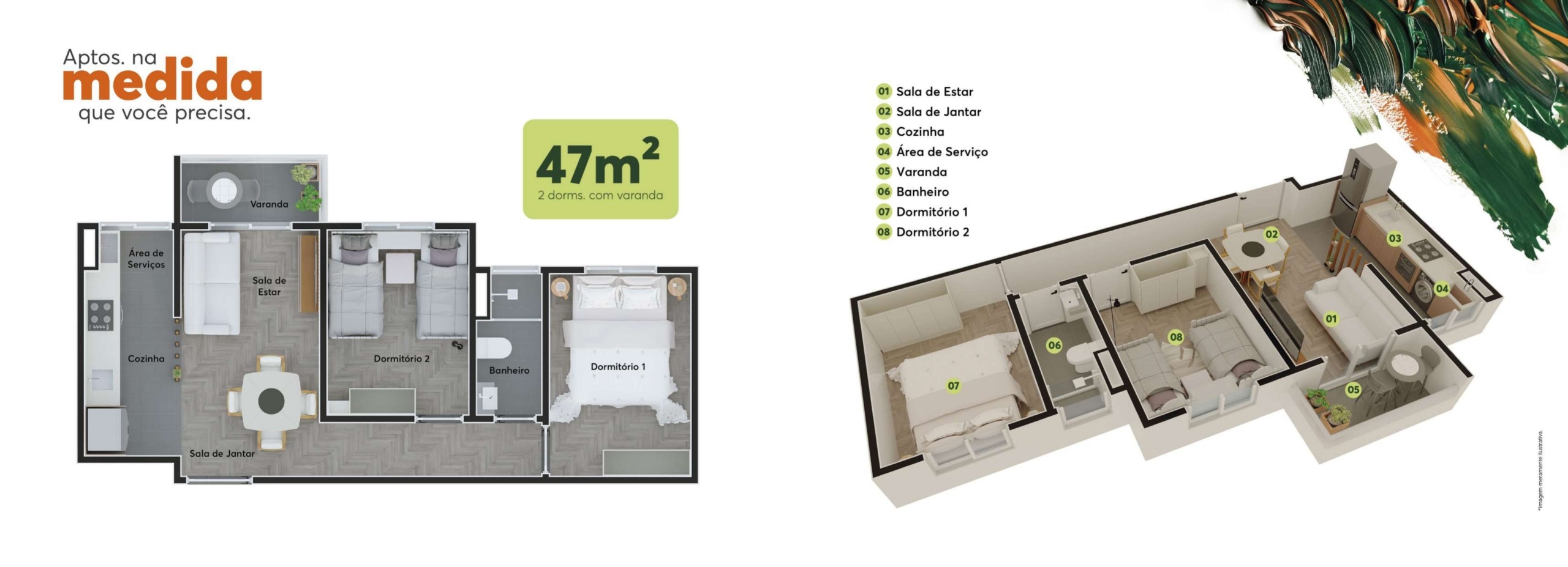 O Residencial Monet é o lugar perfeito! Apartamentos de 46m² e 47m² com 2 dormitórios e varanda, que garante conforto e lazer o ano todo.