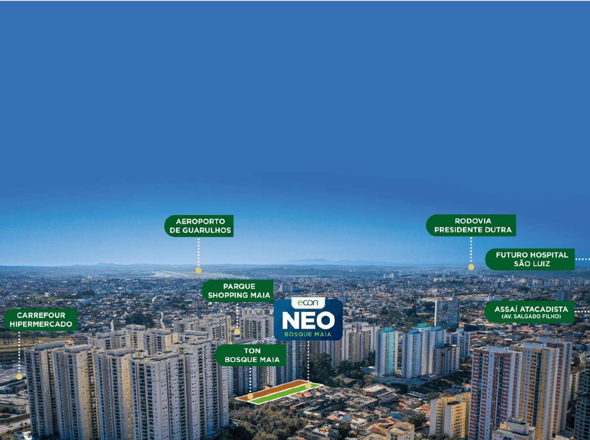 Conheça o Neo Bosque Maia, um empreendimento localizado em um dos melhores endereços de Guarulhos. A apenas 400 metros do Parque Shopping Maia, esse projeto encantador oferece apartamentos aconchegantes de 2 e 3 dormitórios com suíte, terraço gourmet com churrasqueira a carvão e lazer completo. Com opções de diversão para toda a família, o Neo Bosque Maia proporciona uma experiência única. Sua família pode desfrutar de playground, pet place, quadra, solário, piscinas, salão de festas, salão de jogos, brinquedoteca, fitness e muito mais! Viver no Neo também significa estar próximo das melhores opções da cidade, pertinho de áreas verdes deslumbrantes, como o Parque Bosque Maia, Zoológico de Guarulhos e o Parque Linear Transguarulhense. E ainda você terá ao seu alcance referências comerciais, como o Parque Shopping Maia e o Carrefour Hipermercado e uma grande variedade gastronômica. Com essas e muitas outras facilidades, o Neo Bosque Maia foi projetado para um estilo de vida dinâmico. Escolha entre plantas de 57 e 70 m² e curta a energia de morar no melhor da cidade! É a opção certa para você amplificar sua qualidade de vida. Ver menos