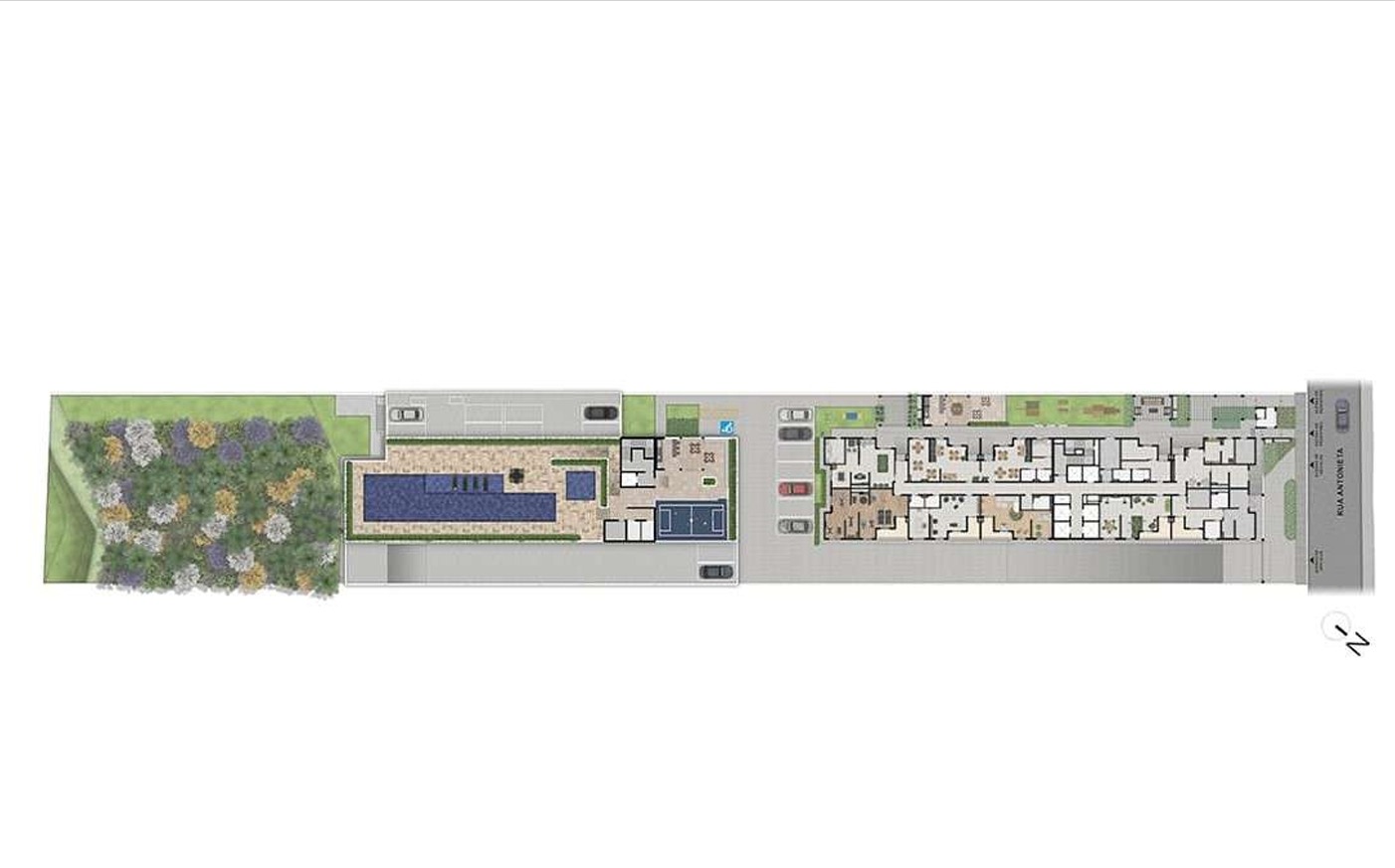 Academia Bicicletário Brinquedoteca Churrasqueira cond. Coworking Deck molhado Elevador social Pet place Piscina adulto Piscina infantil Playground Portaria Quadra poliesportiva Sala de jogos Salão de festas Segurança Solarium Spa