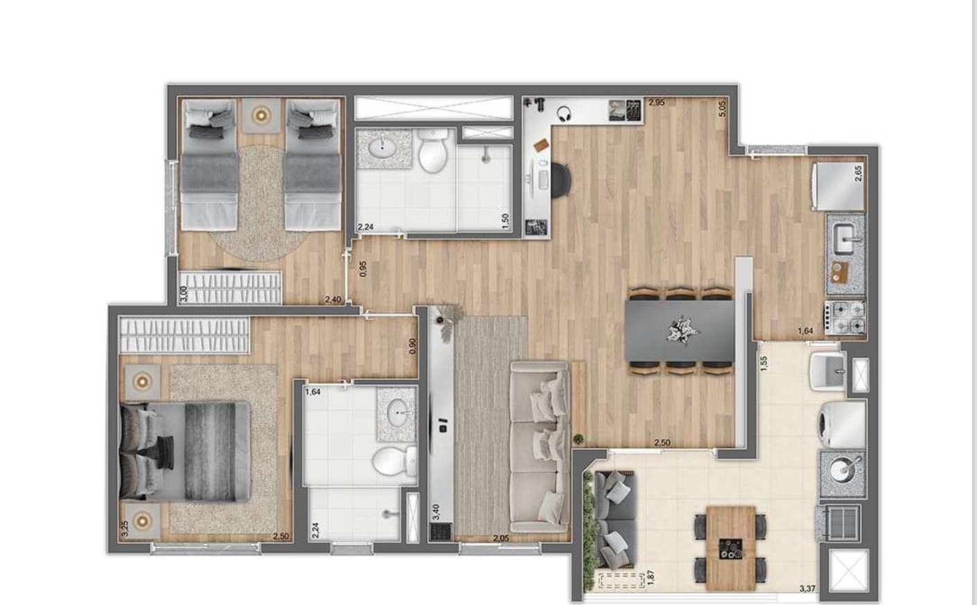 Área do Imóvel 57 a 71 m²